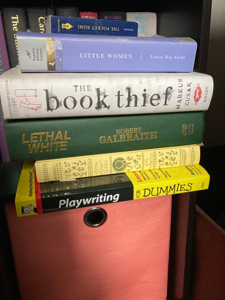 Since this is the beginning of the beginning, I want to start with my current “book nook” situation. I’m not sure if it can really be called a book nook, seeing as it is not one place or in one location. I have a makeshift book shelf in my bedroom that contains many of the books I have loved before and a good chunk of books that I have yet to read. My reviews will start with the untouched titles so I can say I’ve actually read every book I own.